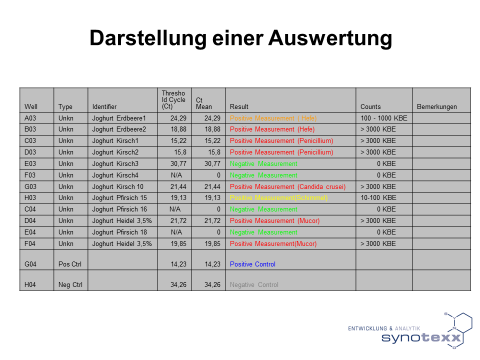 Je nach Probenanzahl liegt also nach 2 bis 3 Stunden ein Ergebnis vor! |