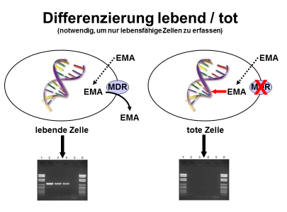 auch falls viele nicht vermehrungsfähige Keime (viable but not culturable) vorhanden sind und |
